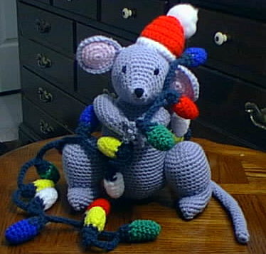 This adorable little guy is from the big Vanna collection book. I couldn't resist making him, he's so cute tangled up in his Christmas lights! Pattern Source: This book is not available except as a package kind of thing from Oxmoor House -- they send you two packets of patterns a month, each set costing $15, until the book is filled. The pattern might have been published in another Leisure Arts book, but I haven't seen it anywhere else.