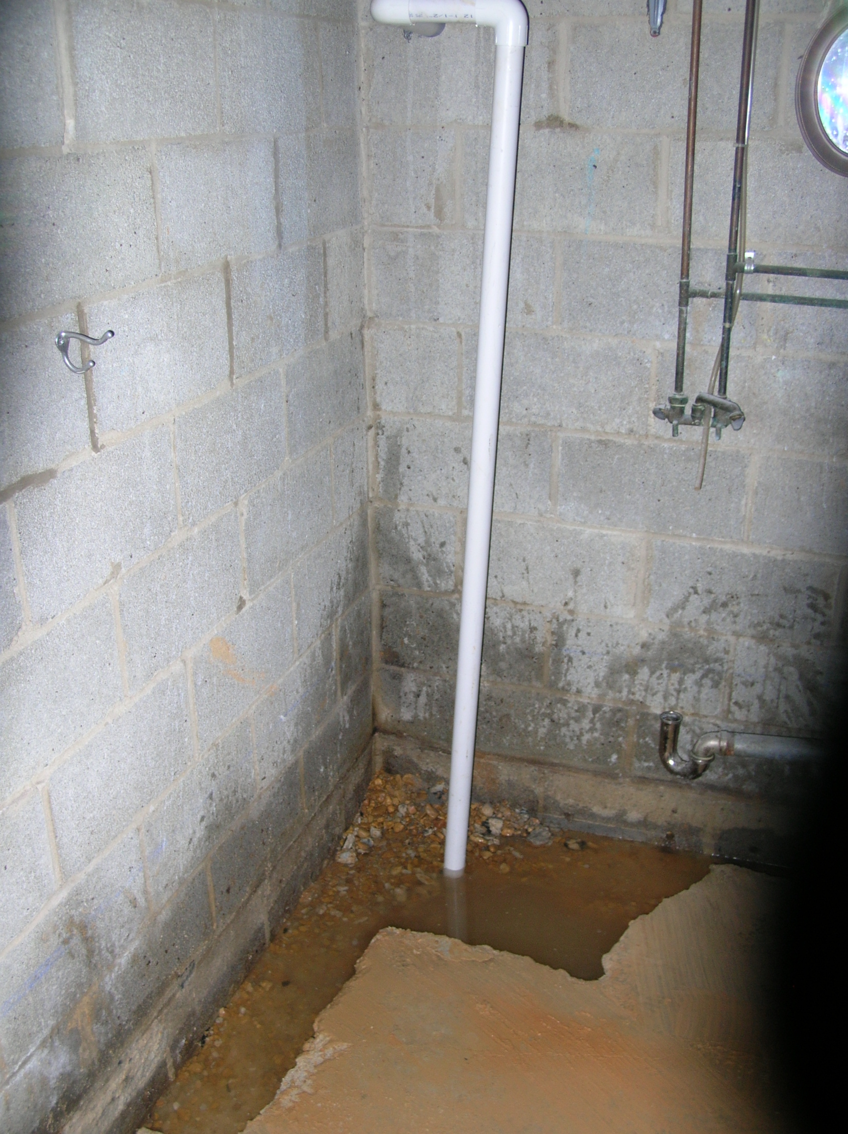 This is the pipe they were using to pump out the water in the trench. Note the splashes on the walls.