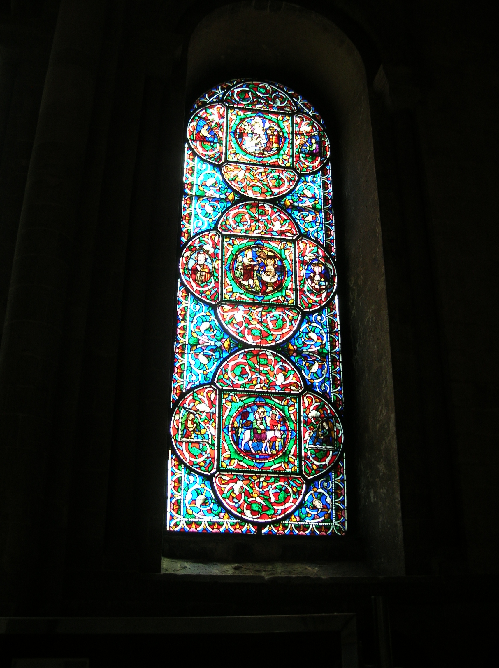 Stained-glass window in Canterbury Cathedral.