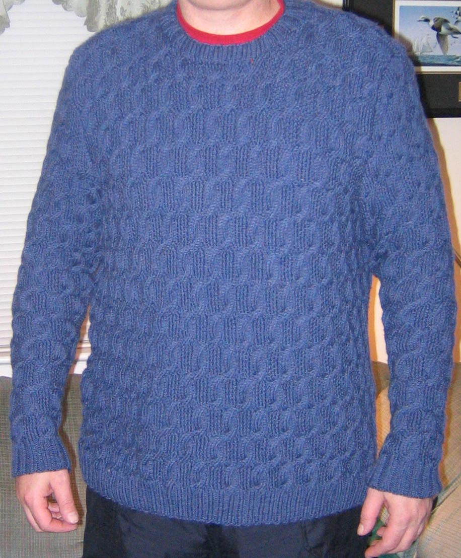 [12/9/2007] Marching Cables sweater - made for my mother's boyfriend as a Christmas present. Pattern Source: Knit 'n Style, October 2007 issue. Pattern design by Jane Schwartz.