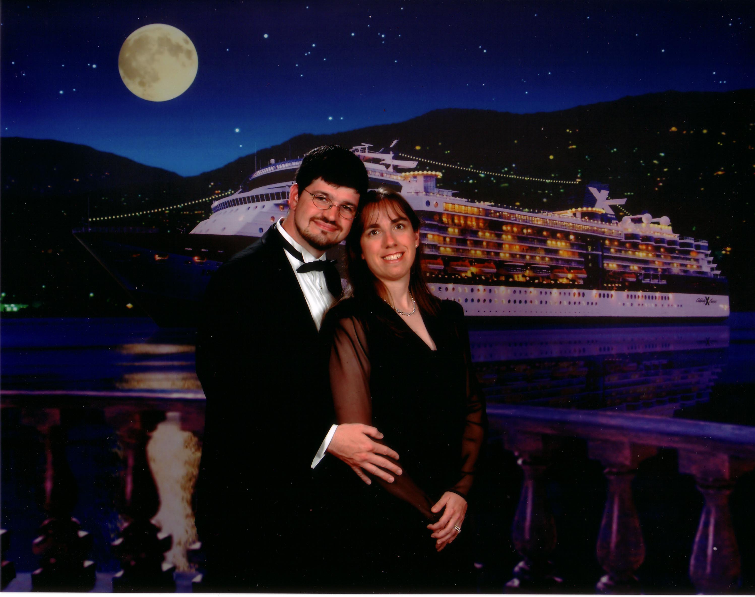 We just loved the cheesy fake backdrop of the ship with the full moon -- even though we'd have had to be out in the ocean to have actually posed for the real thing.