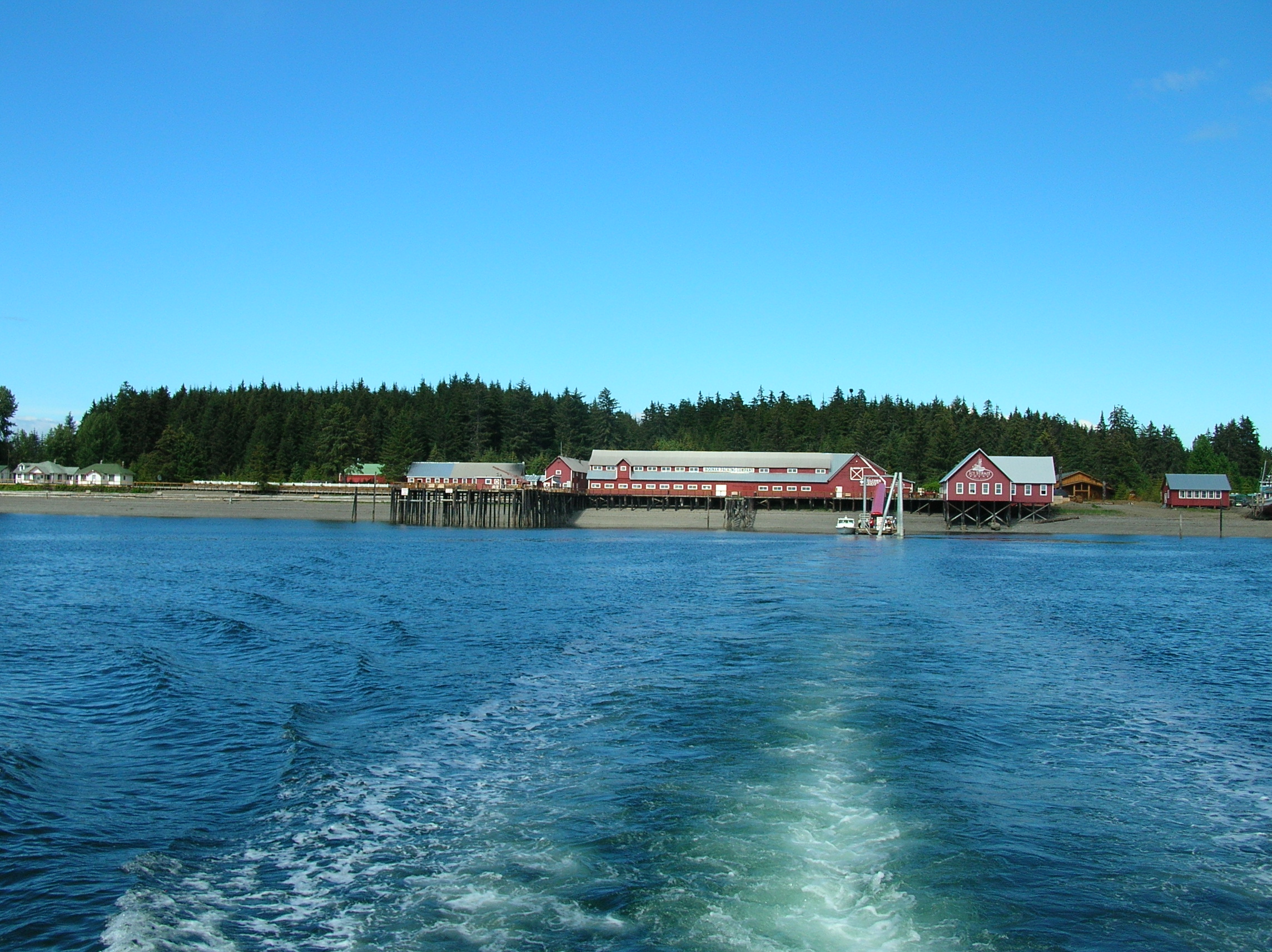 Dock buildings, viewed from the tender that carried us there...probably as we were leaving, judging by the wake in the foreground.