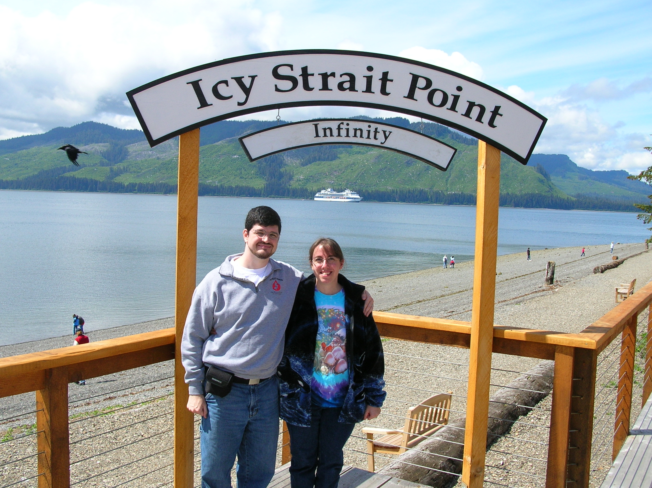 Just to prove we were there. That's the Infinity in the background; there is no dock large enough for a cruise ship there so it had to anchor offshore and use some of the lifeboats as tenders to take passengers ashore.