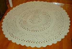 This rug used 3 strands of worsted-weight yarn and a P-hook. Pattern Source: Crochet Collection by Leisure Arts.